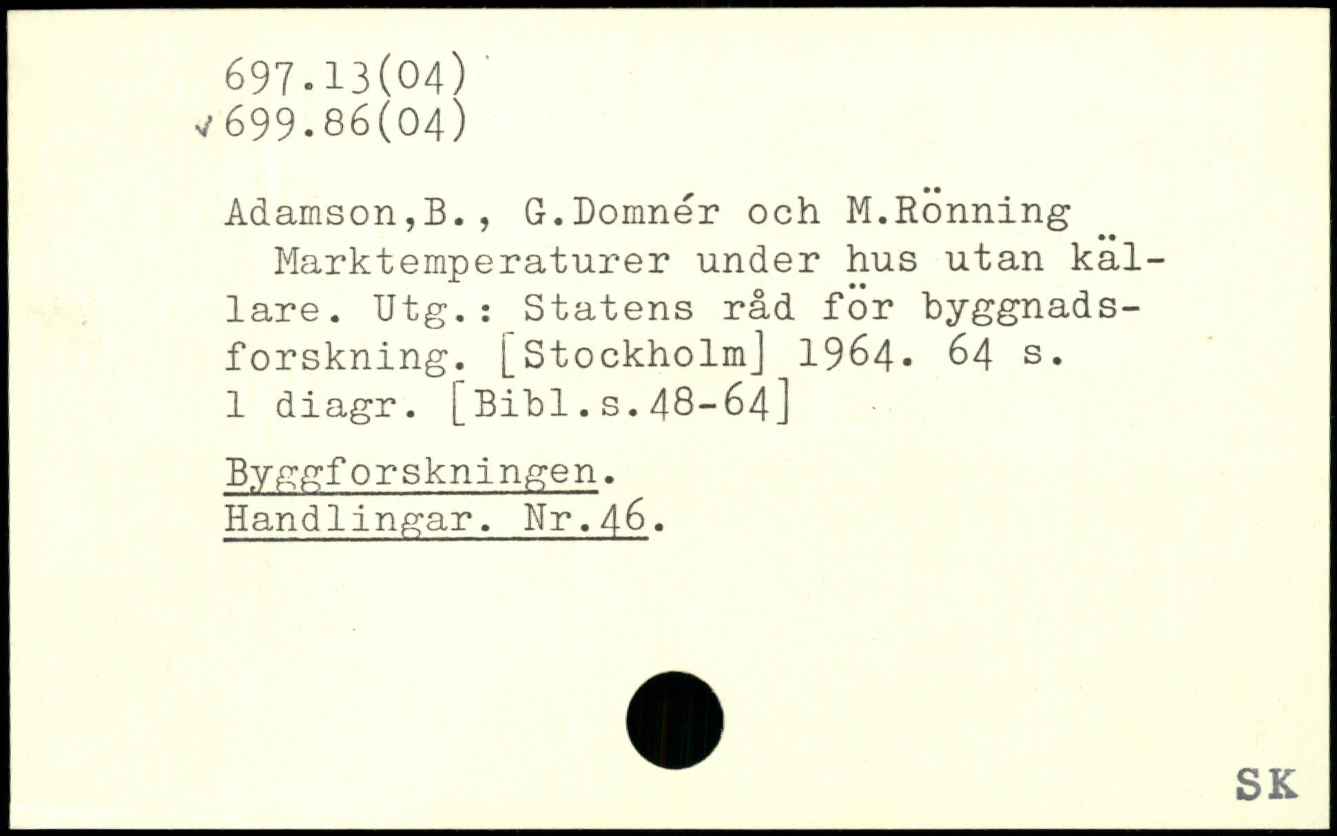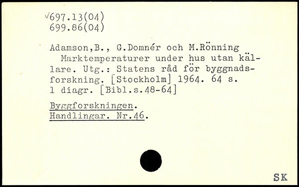 Adamson,B., G.Domner och M.RÖnning Marktemperaturer under hus utan kallare. Utg.: Statens råd för byggnadsforskning.