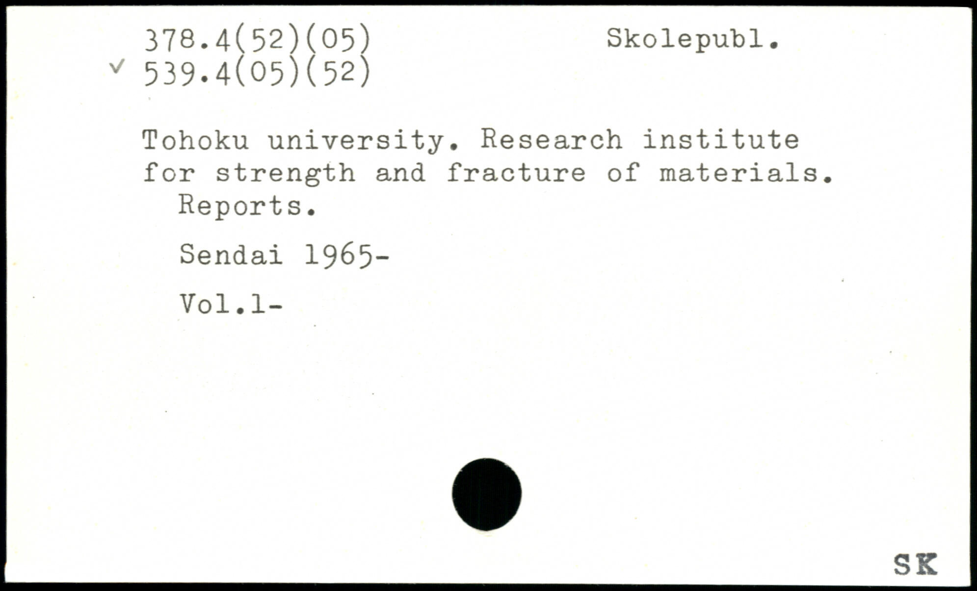 Tohoku university. Research institute for strength and fracture of materials. Reports. Sendai 1965- Vol.l-