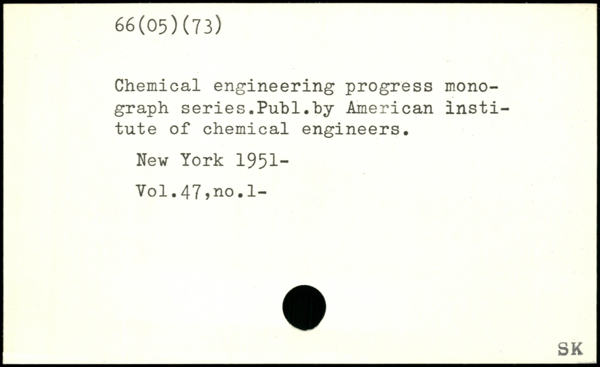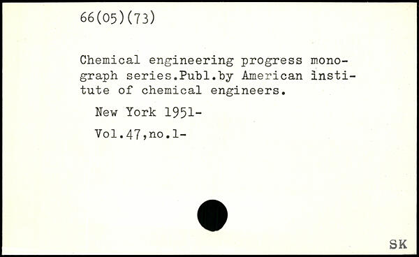 Chemical engineering progress monograph series.Publ.hy American institute of chemical engineers.