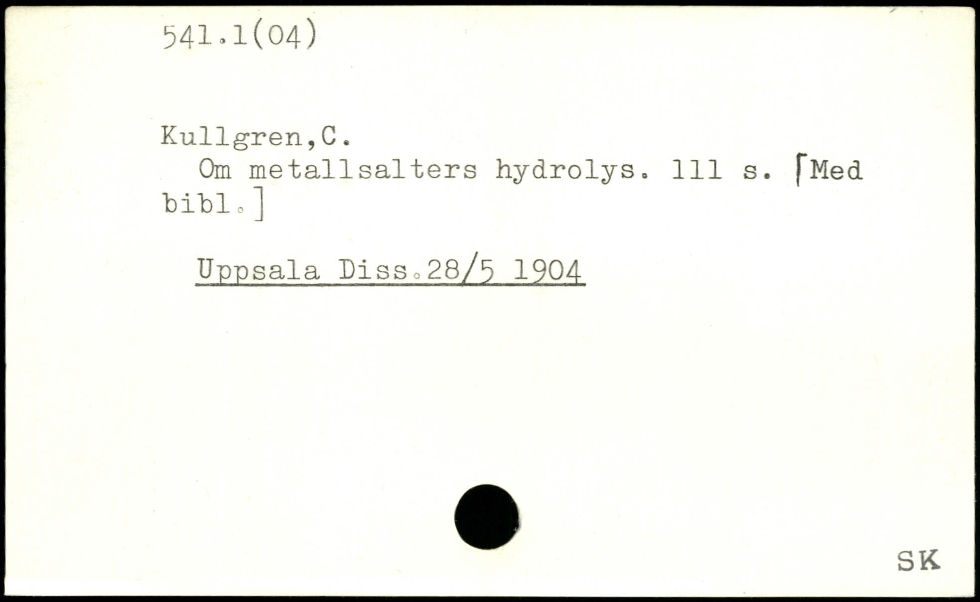 Om metallsalters hydrolys. Ill s. ("Med bihi,] Uppsala DisSo28/5 1904 _.