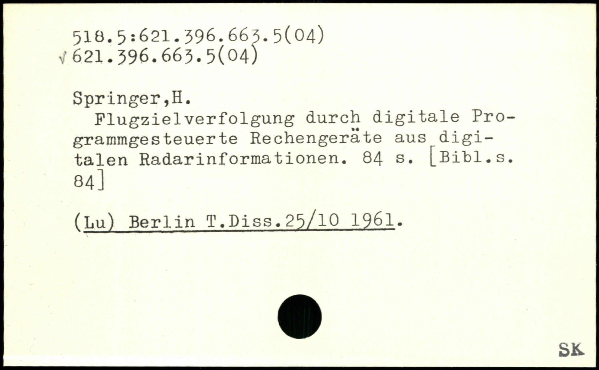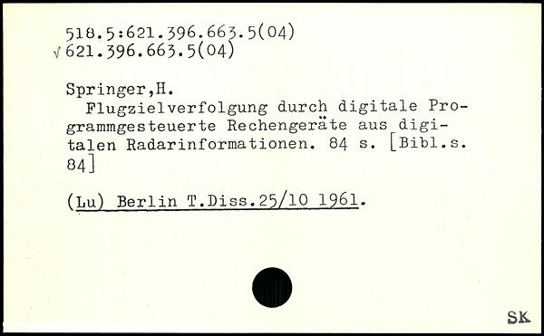 Plugzielverfolgung durch digitale Programmgesteuerte Rechengeräte aus digitalen Radarinformationen.