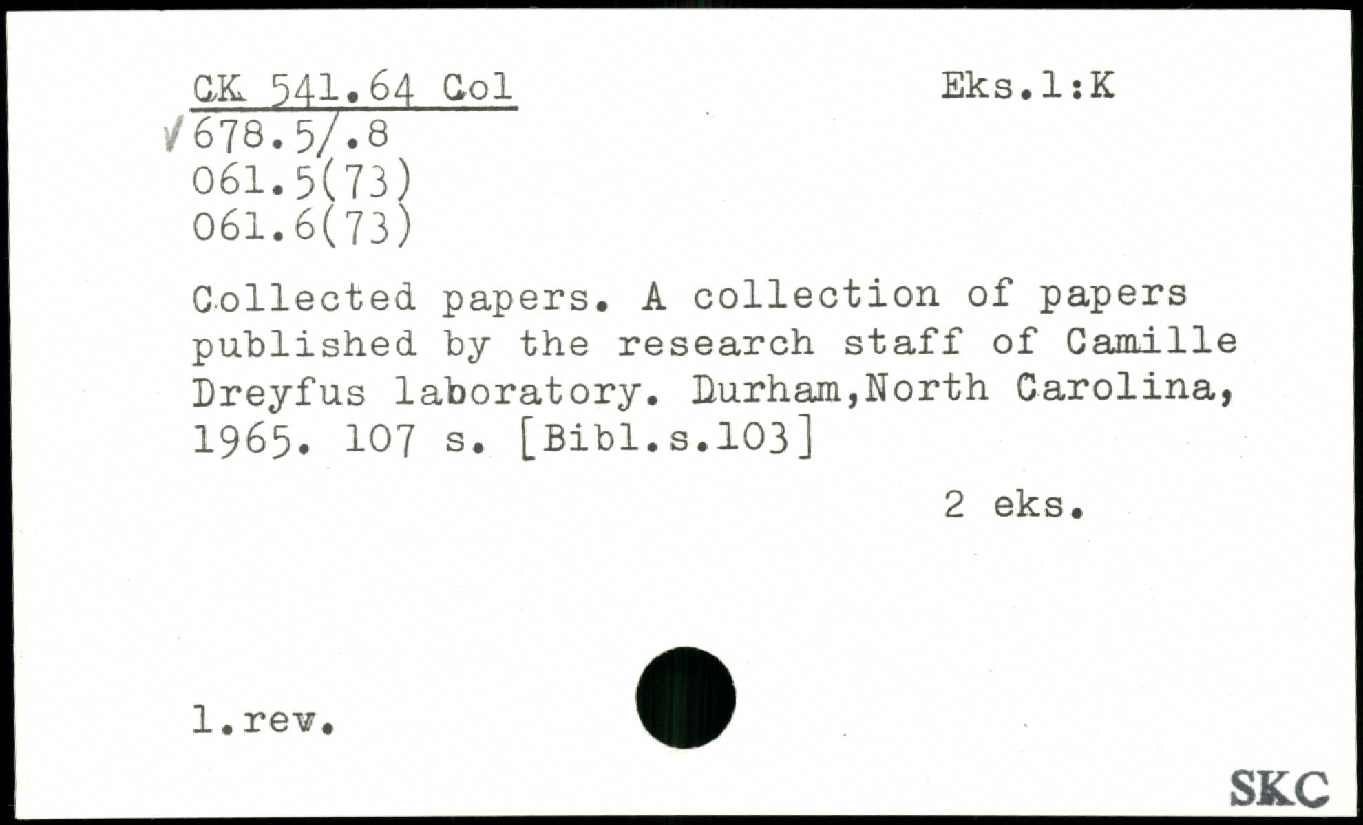 UDK: 541.64 Col, 678.5/.8, 061.5(73), 061.6(73)