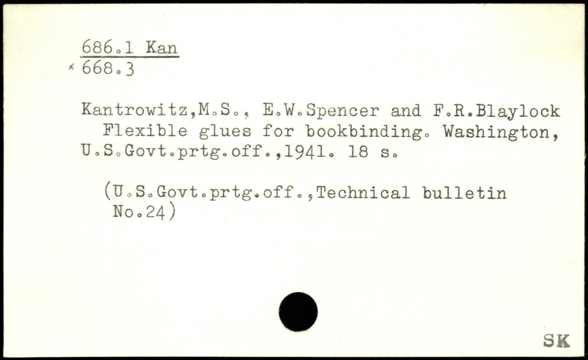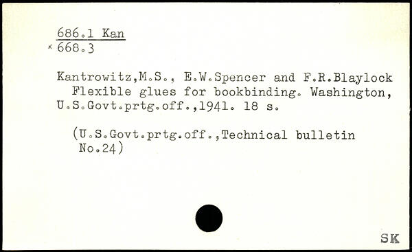 Kantrowitz,MoS0, E.W.Spencer and F,R.Blaylock Flexible glues for bookbinding, Washington, U,So Govt.prtg.off1941