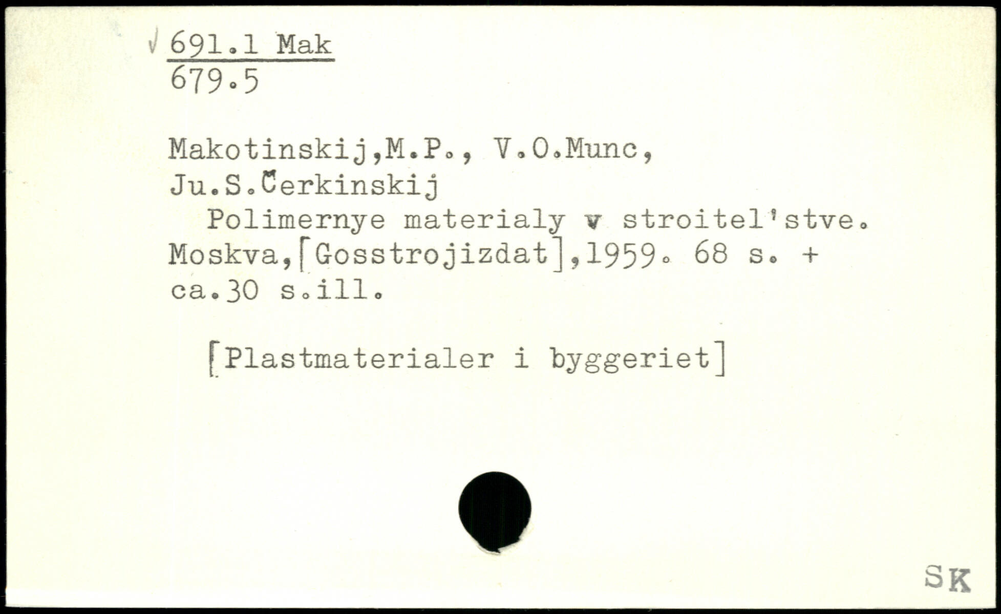 Makotinskij ,M.P0, V.O.Munc, Ju.S o Cerkinskij Polimernye materialy v stroitel’stve. Moskva,[Gosstrojizdat],1959.