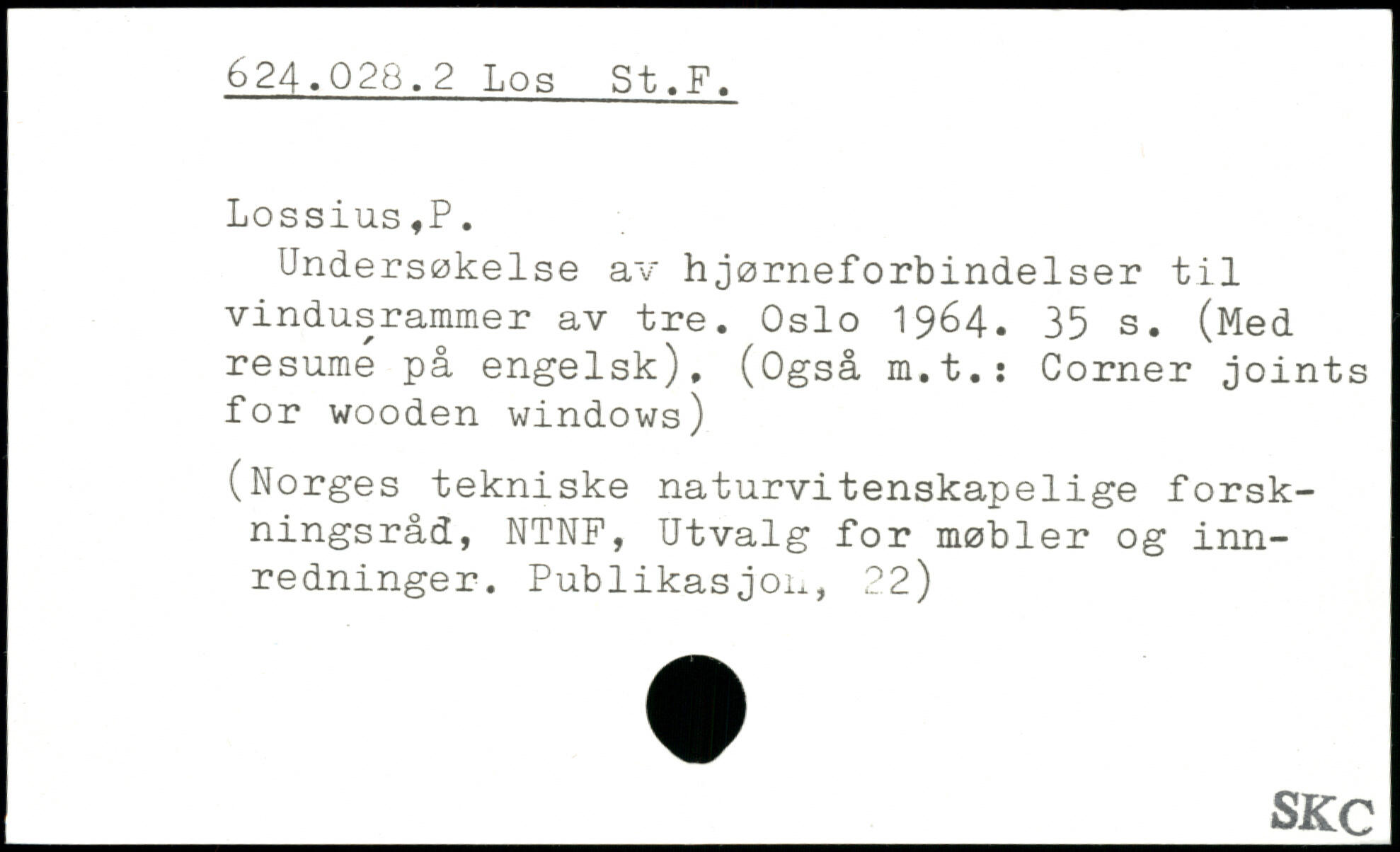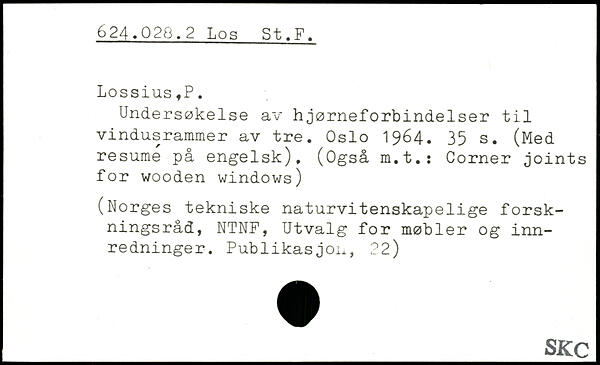Undersøkelse av hjørneforbindelser til vindusrammer av tre. Oslo 1964.