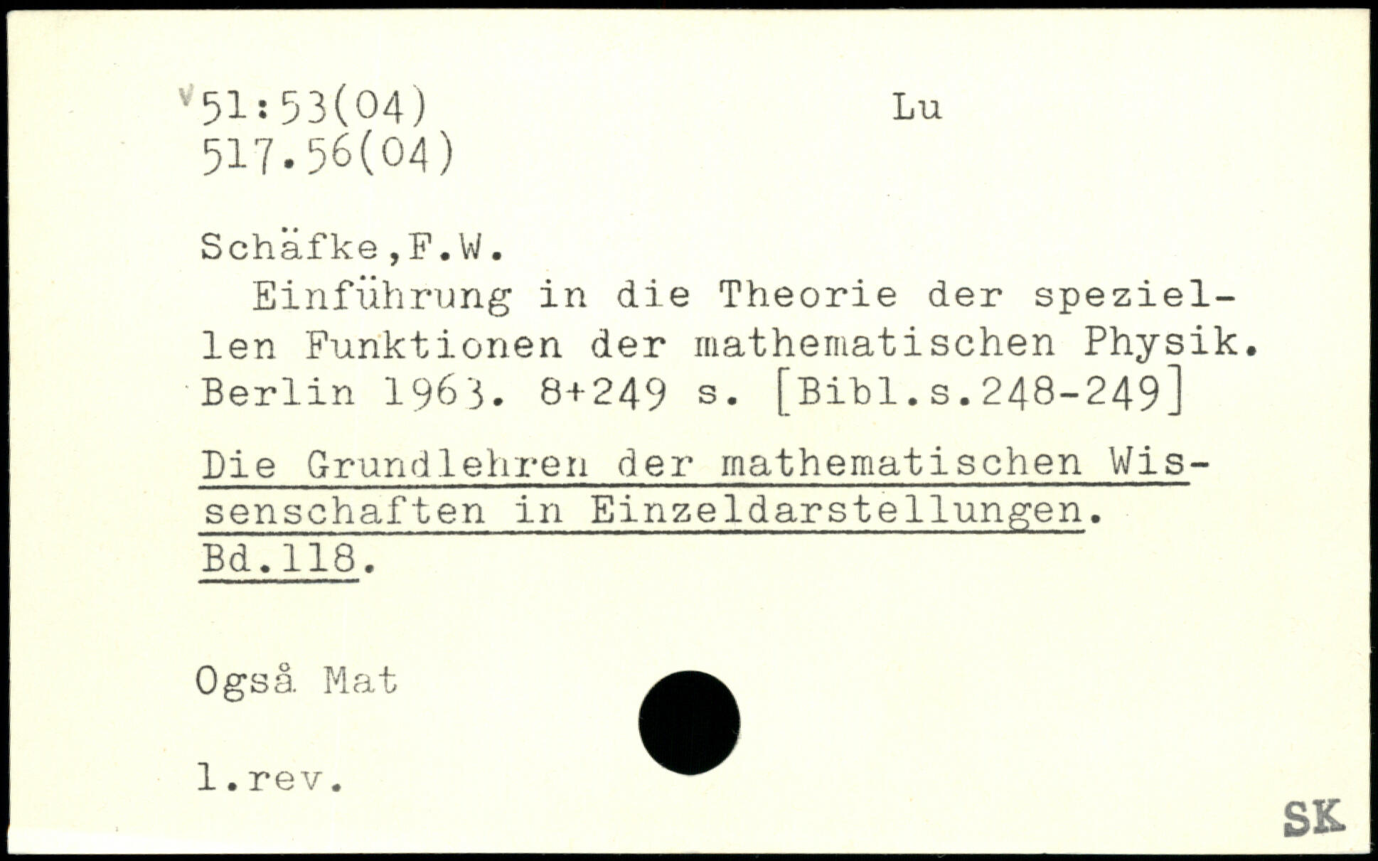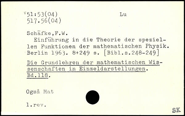 Einführung in die Theorie der speziellen Funktionen der mathematischen Physik.