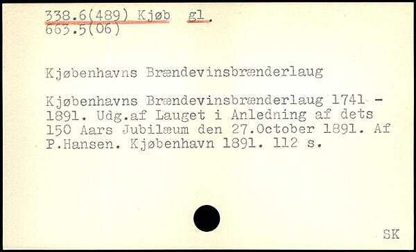 Kjøbenhavns Brændevinsbrænderlaug Kjøbenhavns Brændevinsbrænderlaug 1741 -1891. Udg.af Lauget i Anledning af dets 150 Aars Jubilæum den 27.0ctober 1891. Af P.Hansen. Kjøbenhavn 1891.