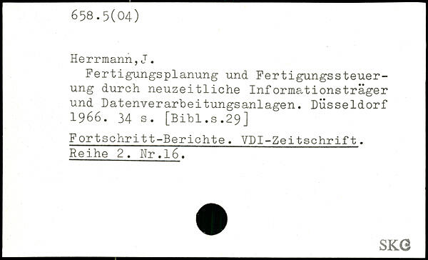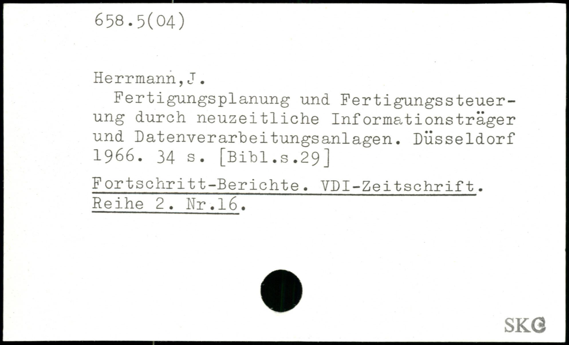 Fertigungsplanung und Fertigungssteuer-ung durch neuzeitliche Informationsträger und Datenverarbeitungsanlagen. Düsseldorf 1966.