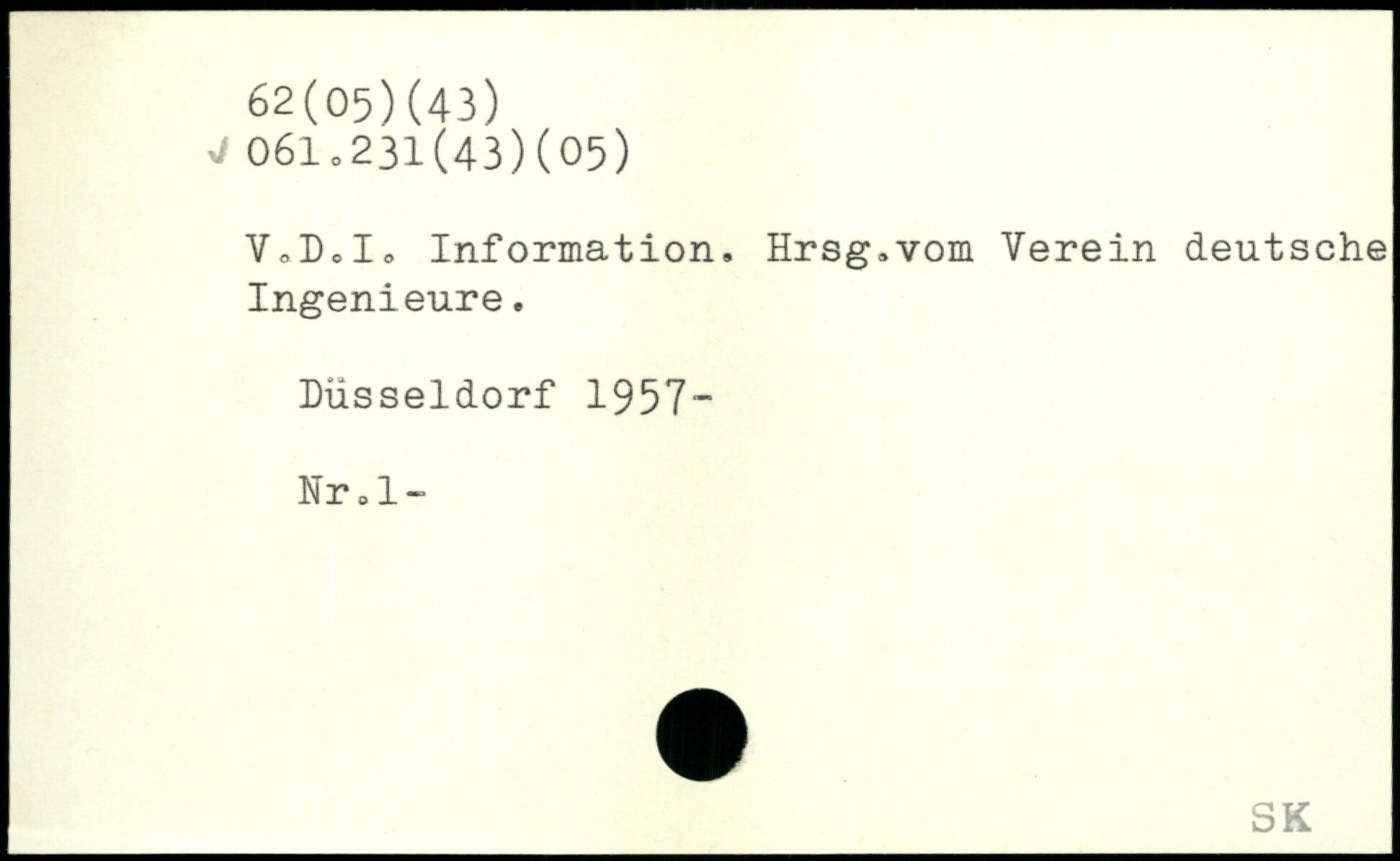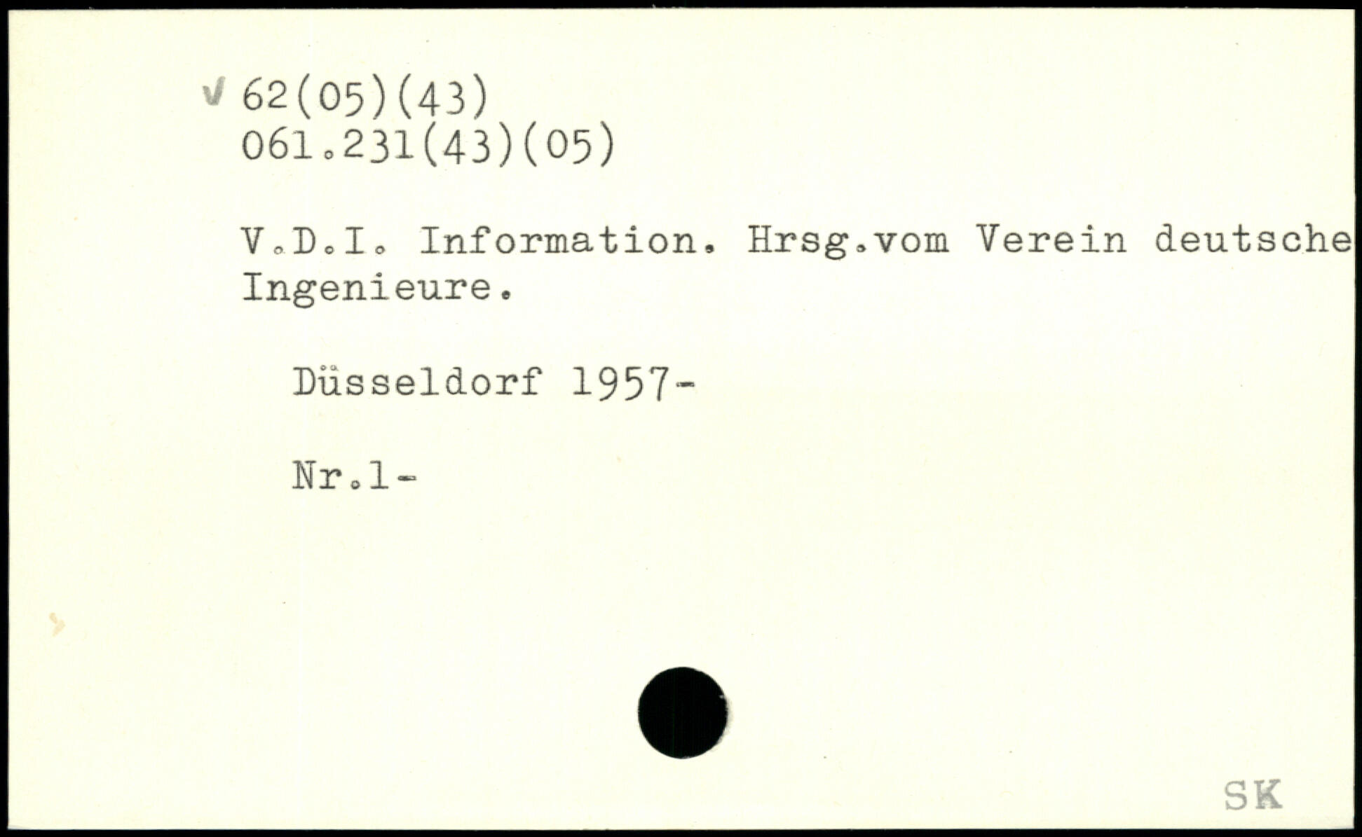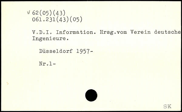 V,D.L Information. Hrsg.vom Verein deutsche Ingenieure. Düsseldorf 1957- Nr.l-
