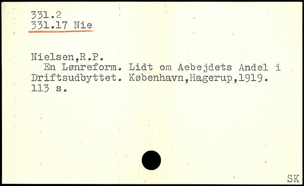 En Lønreform. Lidt om Aebejdets Andel i Lriftsudbyttet.