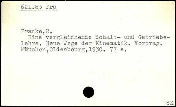Eine vergleichende Schalt- und G-etriebe-lehre. heue Wege der Kinematik. Yortrag.