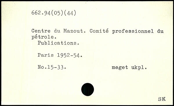 Centre du Mazout. Comité professionnel du pétrole. Publications