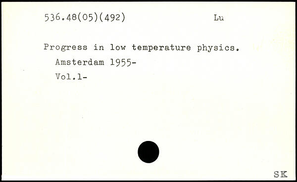 Progress in low temperature physics. Amsterdam 1955-Vol.l-