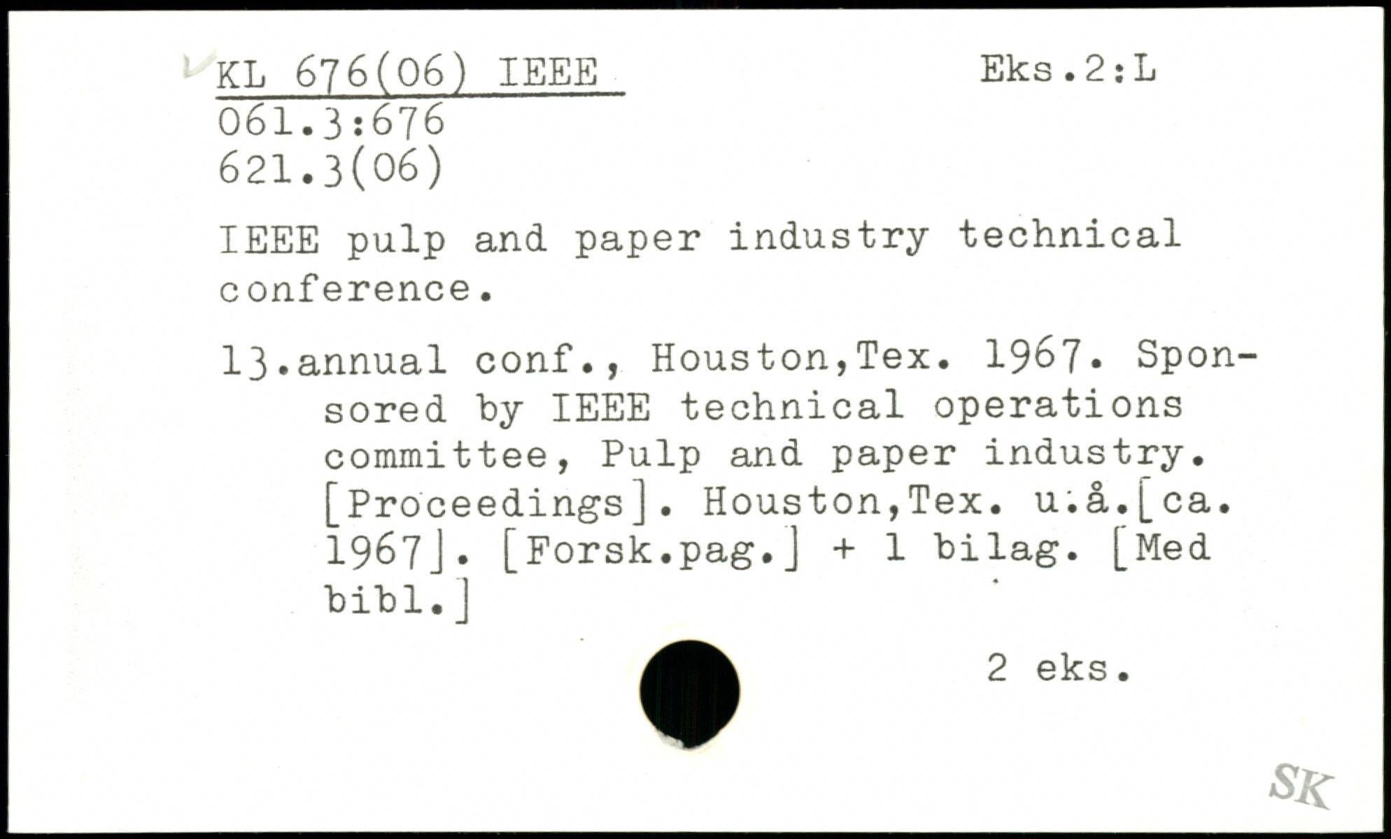 IEEE pulp and paper industry technical conference. 13.annual conf., Houston,Tex. 196?. Sponsored by IEEE technical operations committee, Pulp and paper industry. [Proceedings]. Houston,Tex. u.å.[ca. 1967J. [Forsk.pag.J + 1 bilag. [Med bibl.J