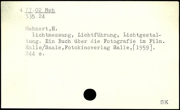 Lichtmessung, Lichtführung, Lichtgestaltung, Ein Buch über die Fotografie im Film.
