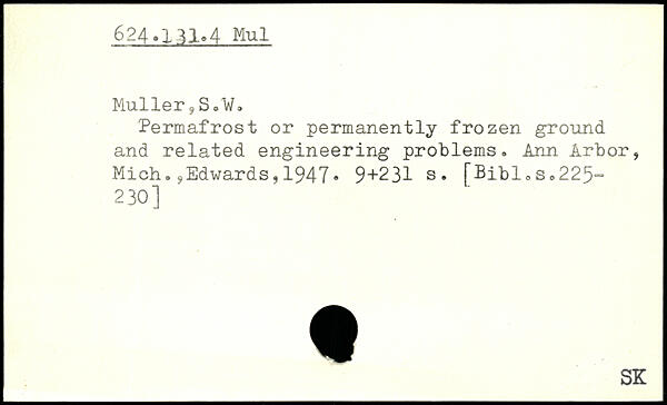 Permafrost or permanently frozen ground and related engineering problems. Ann Arbor, Mich.9Edwards,1947.