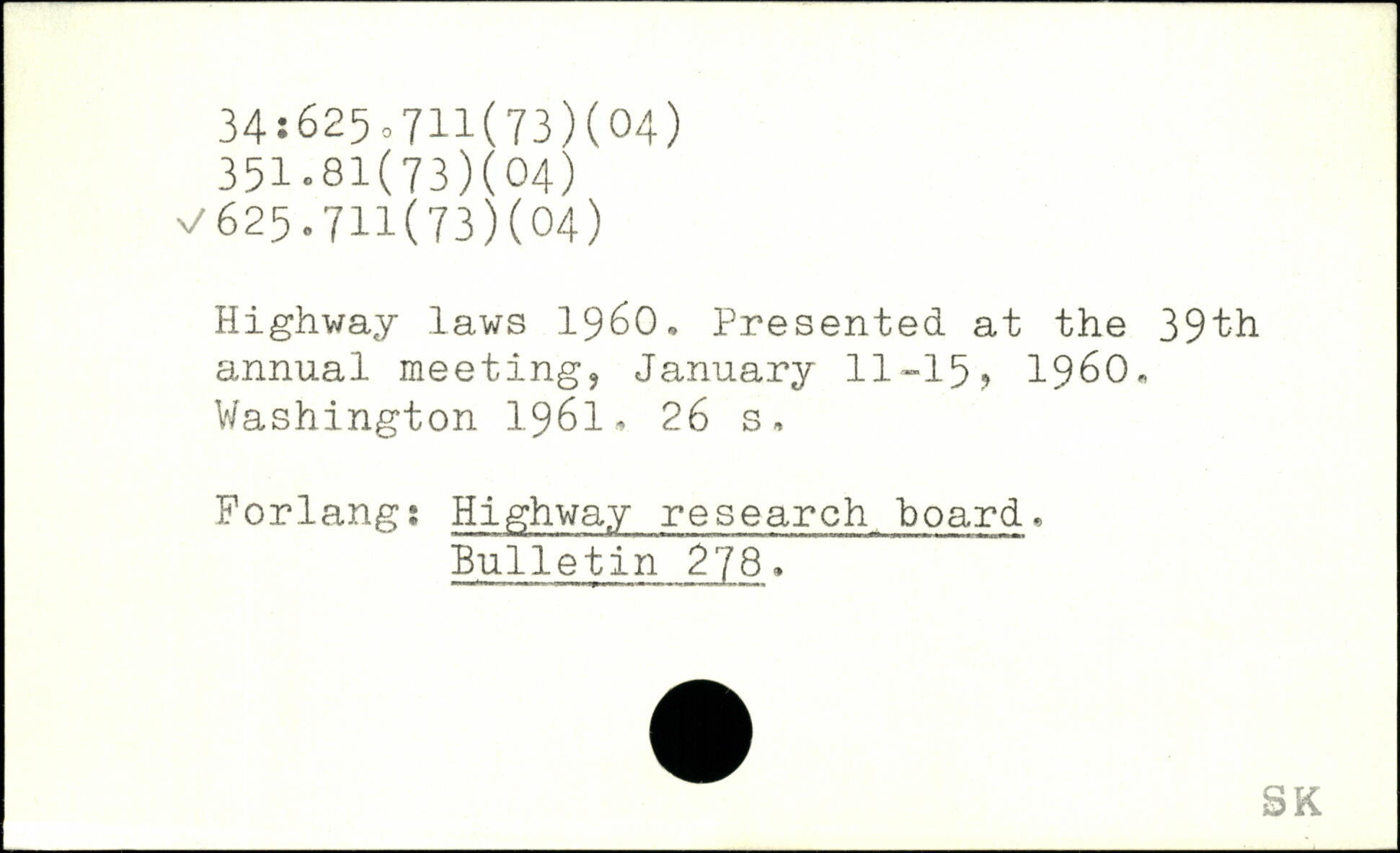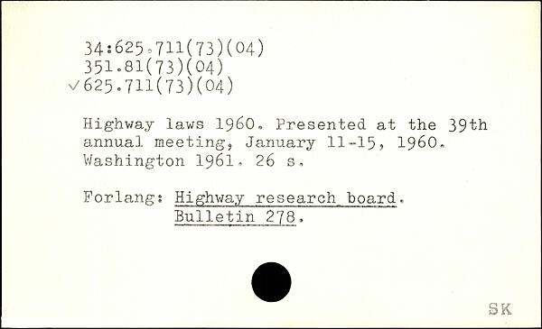 Highway laws 1960. Presented at the 39‘bh annual meeting, January 11-15, 19^0