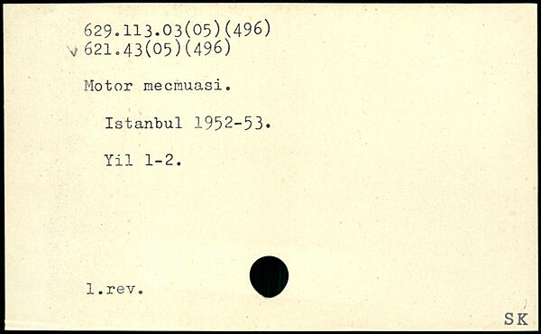 Motor mecmuasi. Istanbul 1952-53, Yil 1-2.