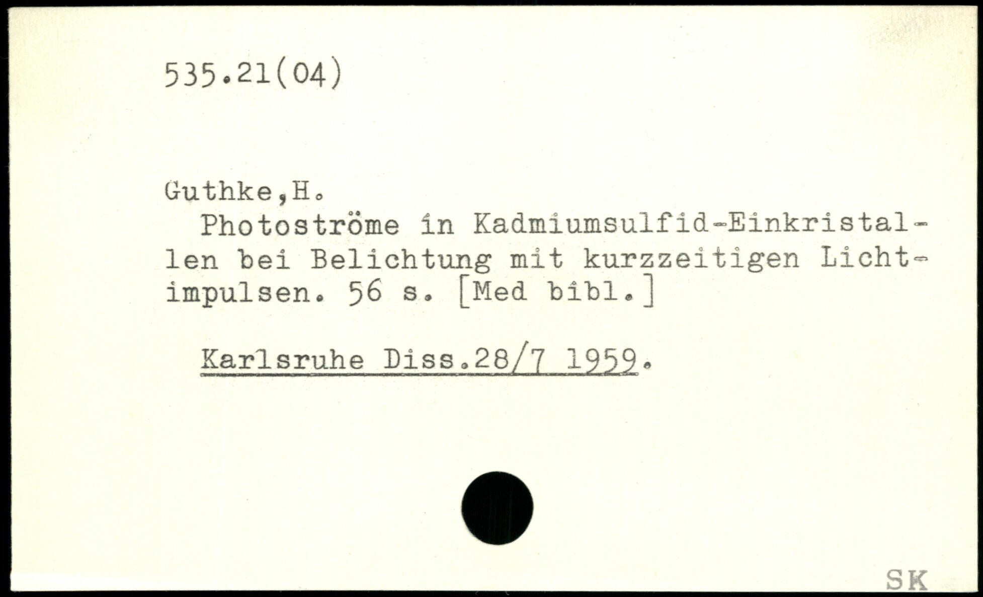 Ü-uthke ,Ho Photoströme in Kadmiumsulfid-Einkristal-len hei Belichtung mit kurzzeitigen Lichtimpulsen.