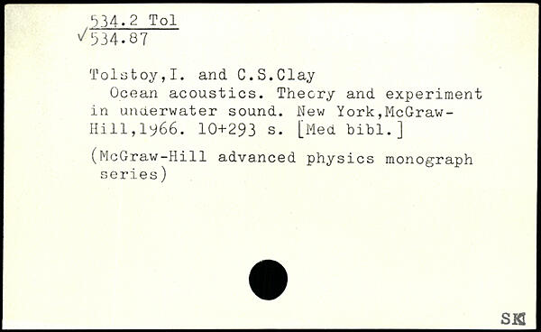 Ocean acoustics. Theory and experiment in underwater sound. New York,McGraw-Hill,1^66.
