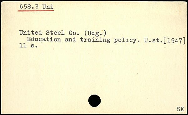 United Steel Co. (Udg.) Education and training policy. U.st.[1947]