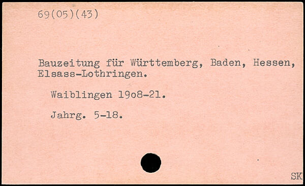 Bauzeitung für Württemberg, Baden, Hessen, Elsass-Lothringen. Waiblingen 19o8-21. Jahrg. 5-18.