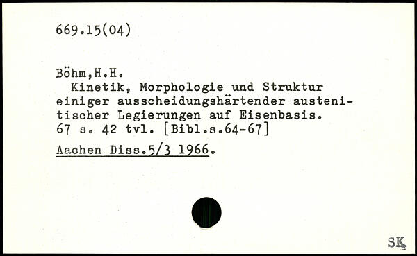 Kinetik, Morphologie und Struktur einiger ausscheidungshärtender austeni-tischer Legierungen auf Eisenbasis.