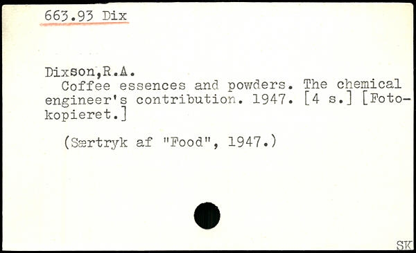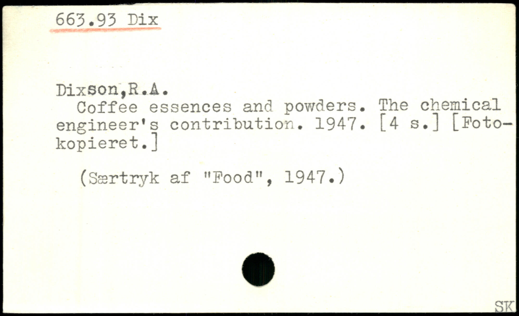 Coffee essences and powders. The chemical engineer's contribution. 1947.