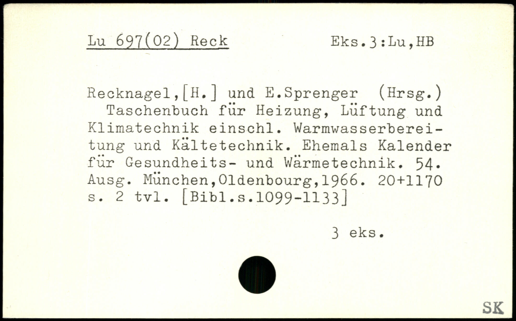 Taschenbuch für Heizung, Lüftung und Klimatechnik einschl. Warmwasserbereitung und Kältetechnik. Ehemals Kalender für Gesundheits- und Wärmetechnik. 54. Ausg.