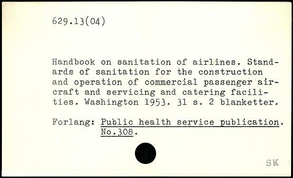 Handbook on sanitation of airlines. Standards of sanitation for the construction and operation of commercial passenger aircraft and servicing and catering facilities.