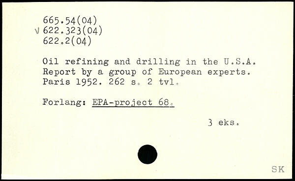 Oil refining and dr1111ng in the U.S.A. Report by a group of European experts.