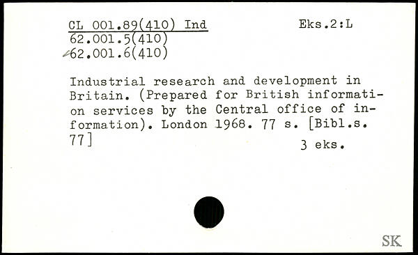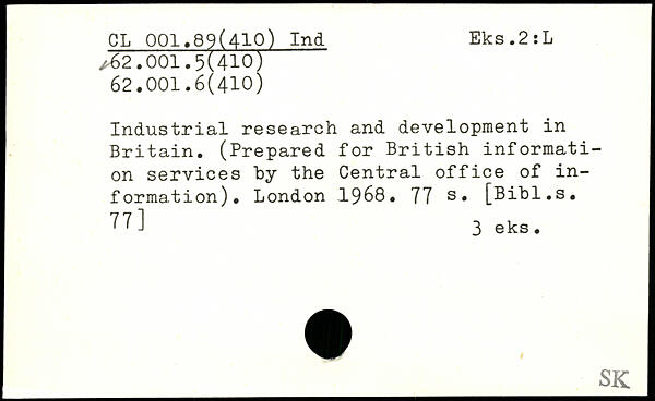 Industrial research and development in Britain. (Prepared for British information services by the Central office of information).