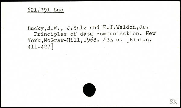 Lucky,R.W., J.Salz and. E. J.Weldon, Jr. Principles of data communication.
