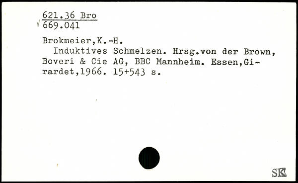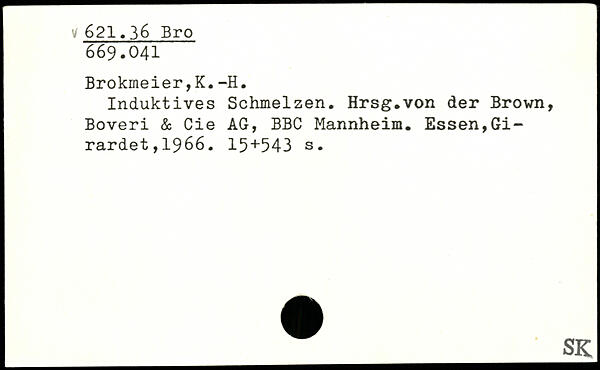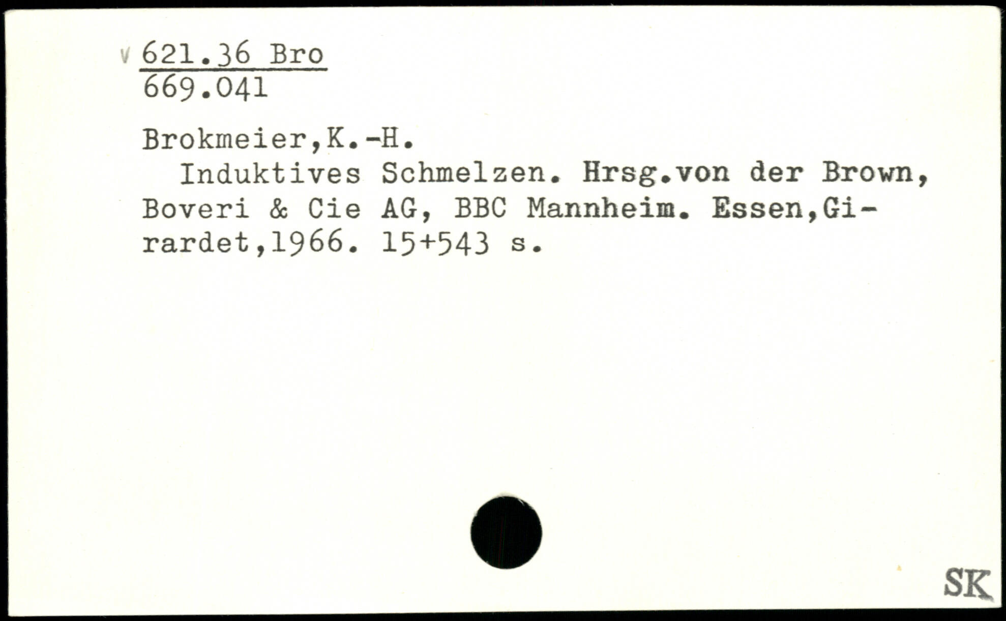 Induktives Schmelzen. Hrsg.von der Brown, Boveri & Cie AG, BBC Mannheim.