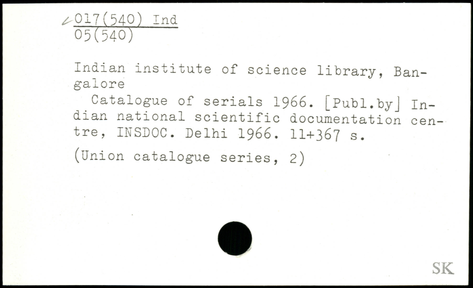 Indian institute of science library, Bangalore Catalogue of serials 1966.