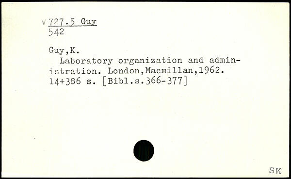 Laboratory organization and administration. London,Macmi11an,1962.