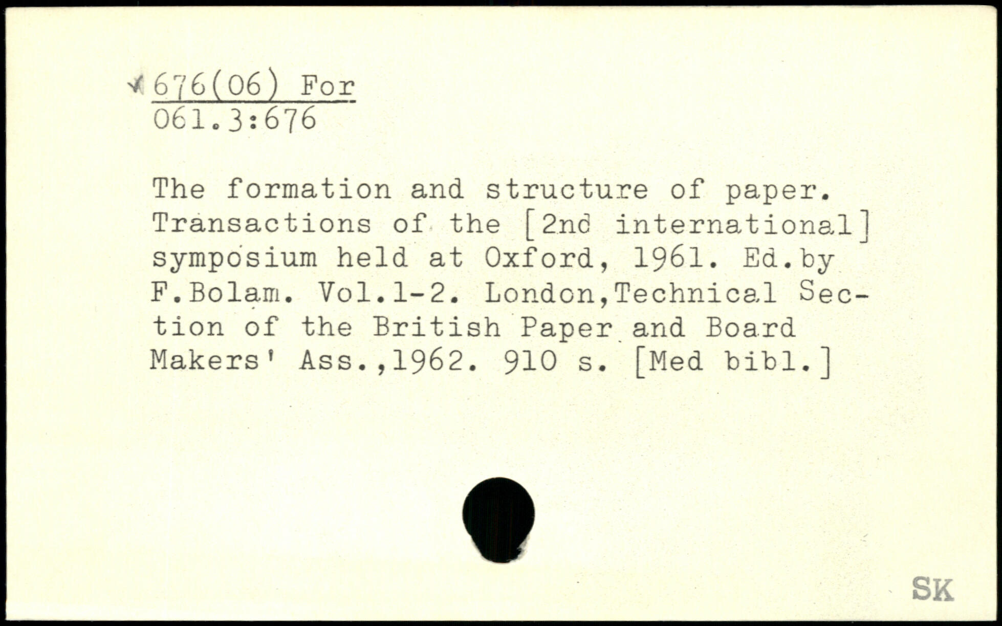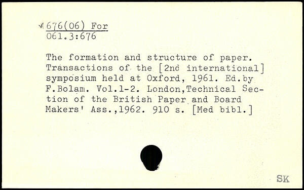 The formation and structure of paper. Transactions of the [2nd international] symposium held at Oxford, 1961. Ed.by F.Bolam.