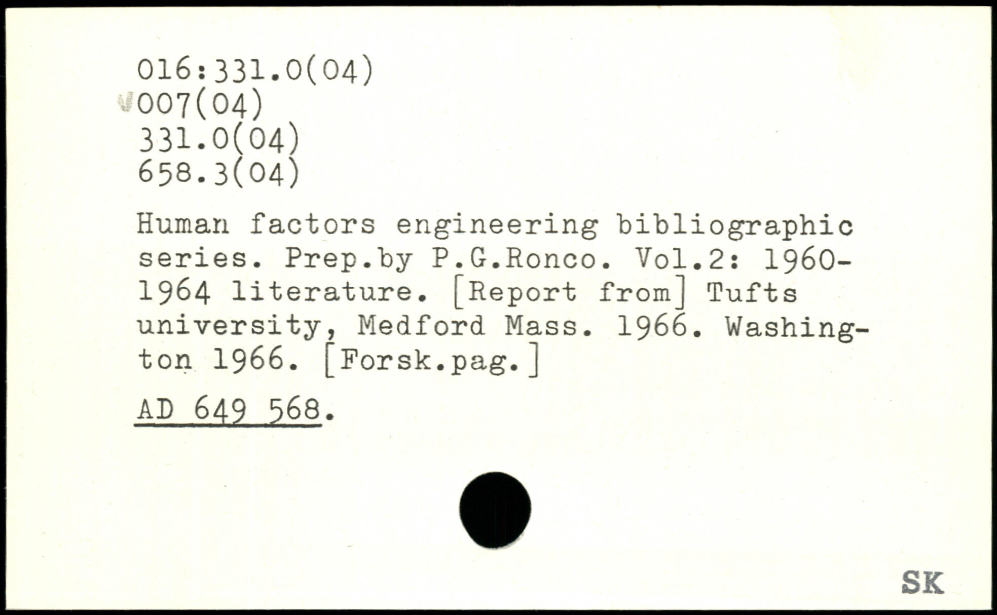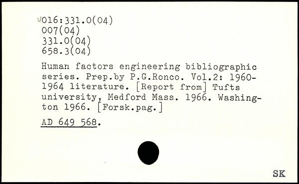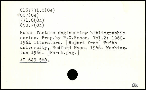 Human factors engineering bibliographic series. Prep.by P.G.Ronco.