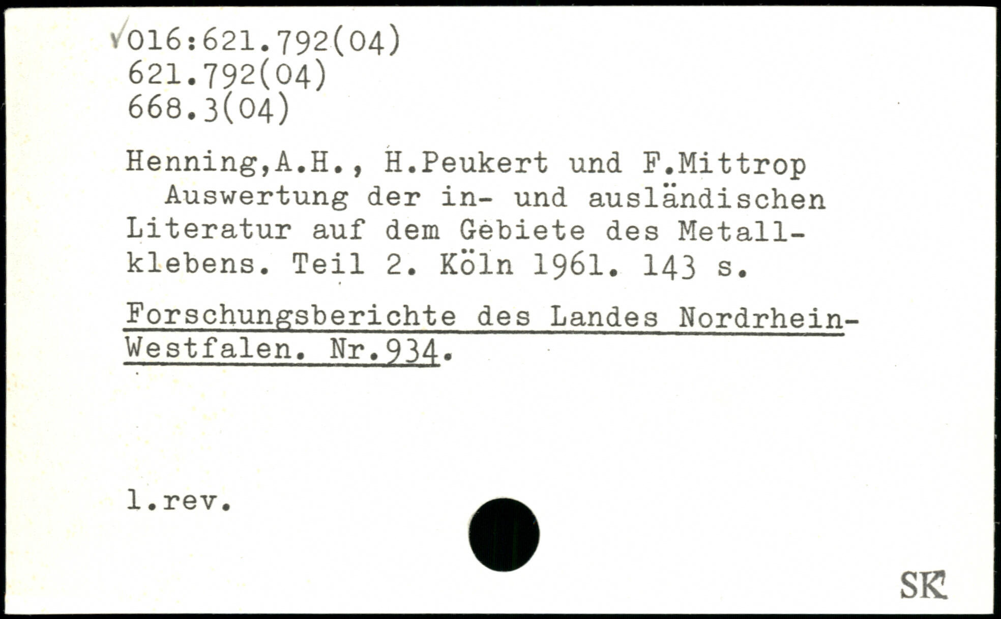 HenningjA.H., H.Peukert und F.Mittrop Auswertung der in- und ausländischen Literatur auf dem Gebiete des Metallklebens. Teil 2.