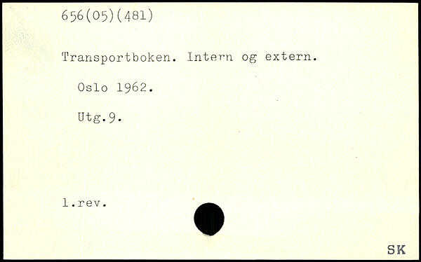 Transport boken. Intern og extern. Oslo 1962. Utg.9.