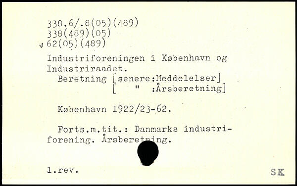 Industriforeningen i København og Industriraadet. Beretning [_ senere jMeddelelser J [ " jÅrsberetning]