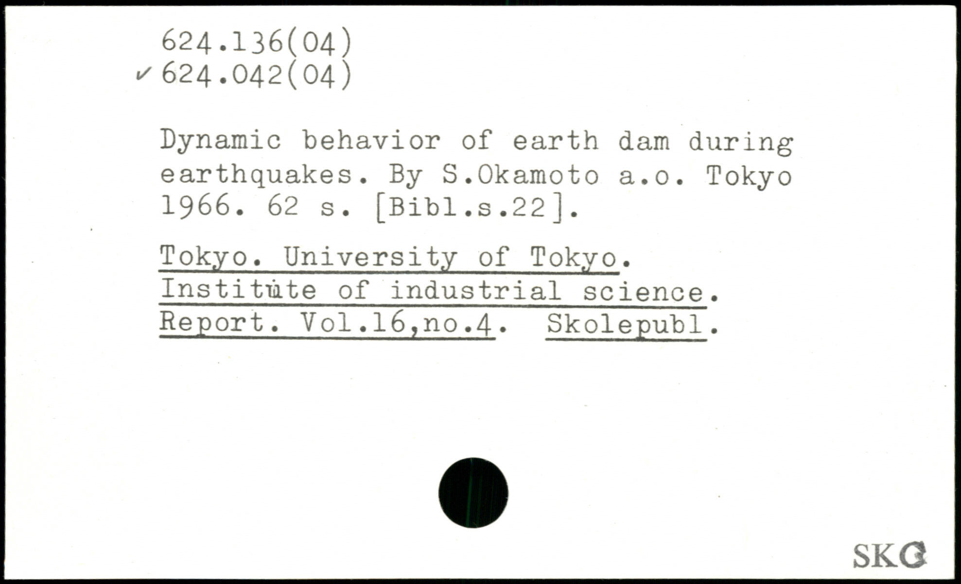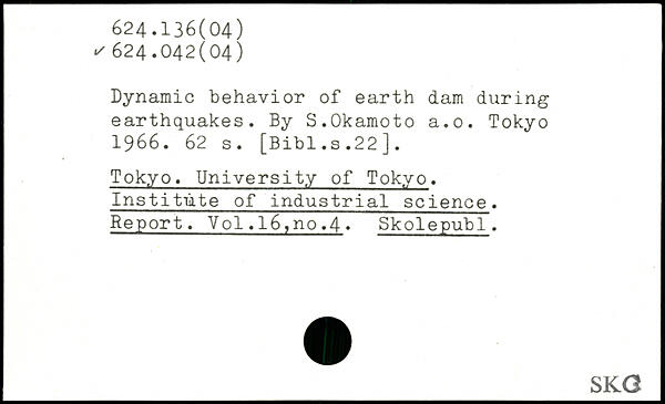 Dynamic behavior of earth dam during earthquakes. By S.Okamoto a.o.