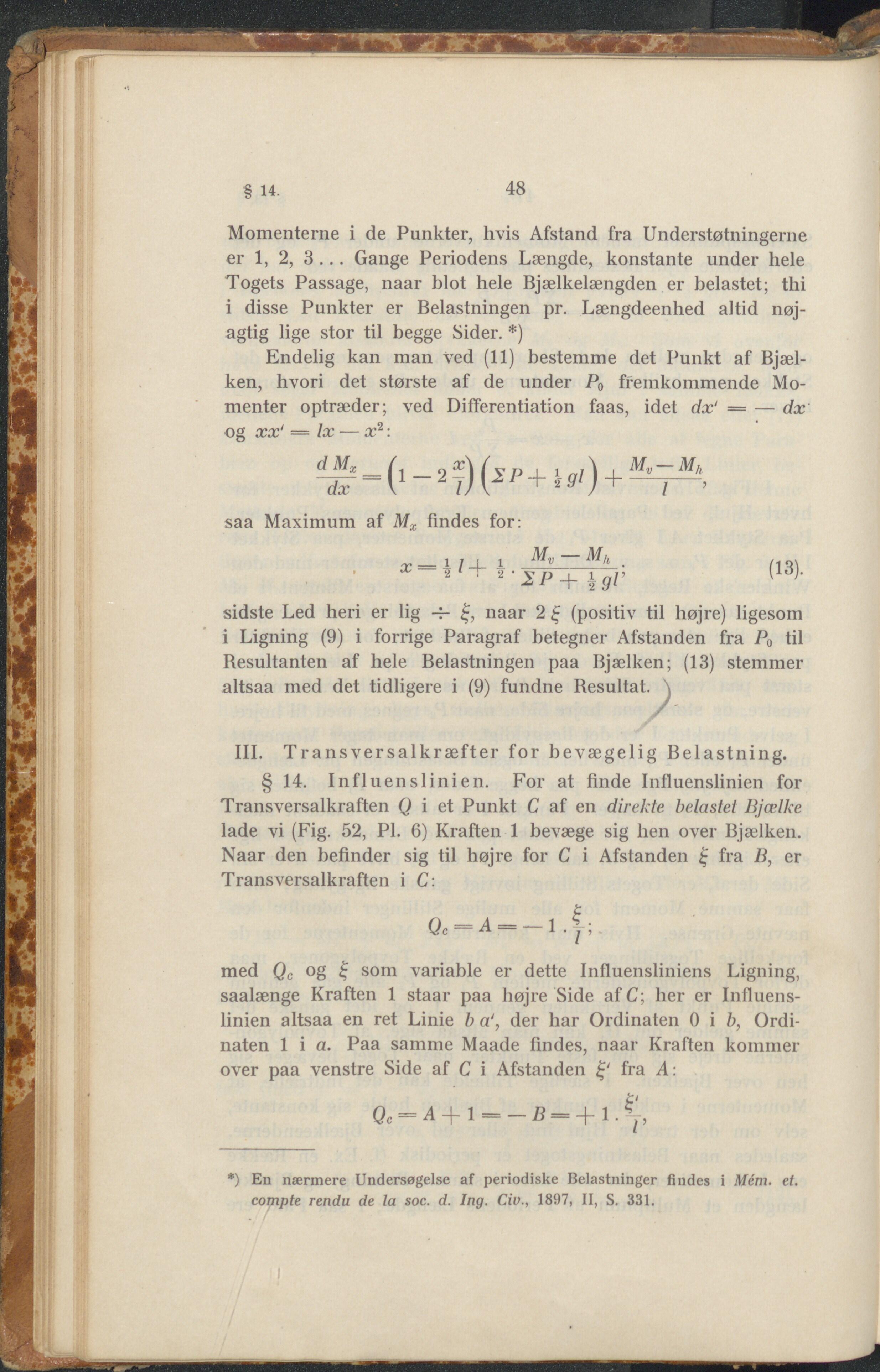 111. Transversalkræfter for bevægelig Belastning.