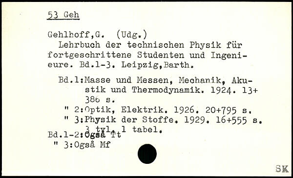 Gehlhoff,G. (üdg.) Lehrbuch der technischen Physik für fortgeschrittene Studenten und Ingenieure.