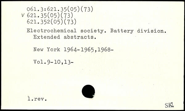 Electrochemical society. Battery division. Extended abstracts.