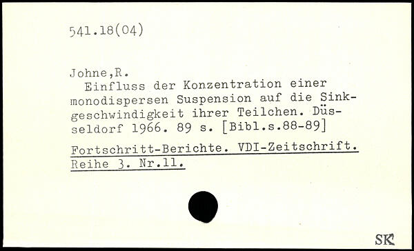 Einfluss der Konzentration einer monodispersen Suspension auf die Sinkgeschwindigkeit ihrer Teilchen. Düsseldorf 1966.