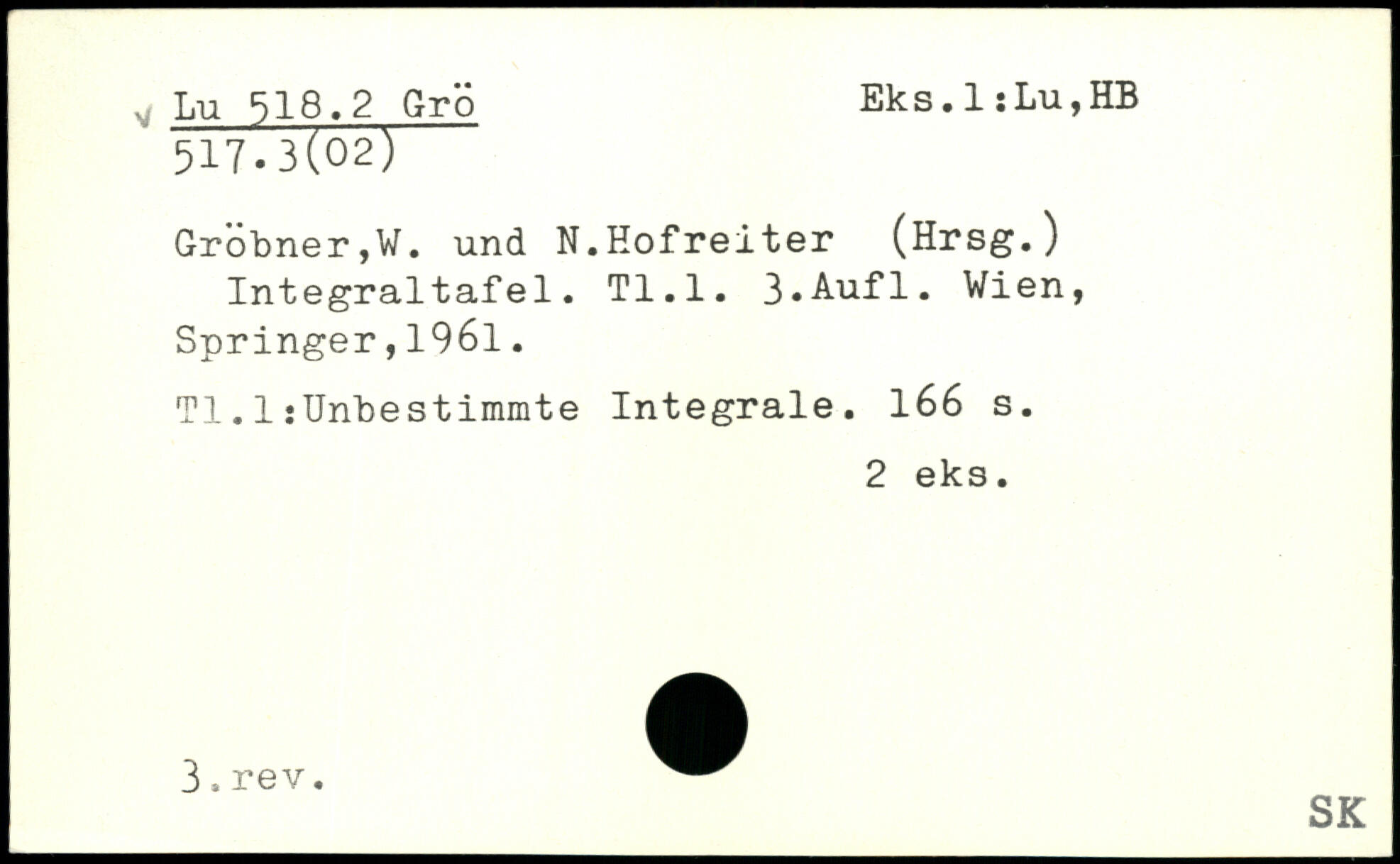 Integraltafel. Tl.l.