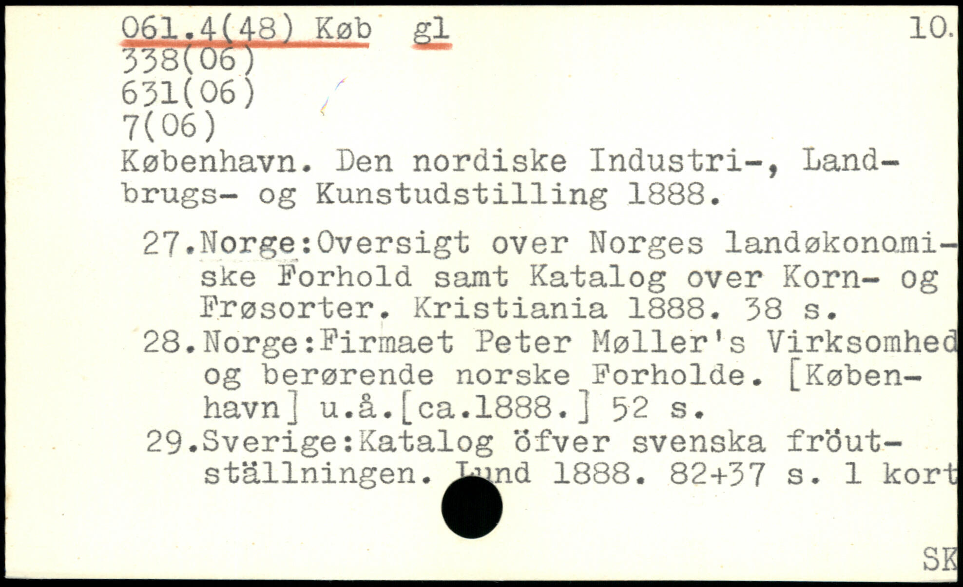 København. Den nordiske Industri-, Landbrugs- og Kunstudst1111ng 1888. 27. Norge:Oversigt over Norges landøkonomiske Korhold samt Katalog over Korn- og Frøsorter. Kristiania 1888.