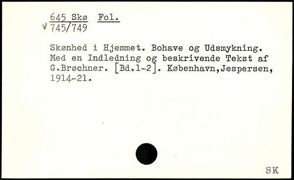 Skønhed i Hjemmet. Bohave og Udsmykning. Med en Indledning og beskrivende Tekst af G.Brøchner. [Bd.l~2].