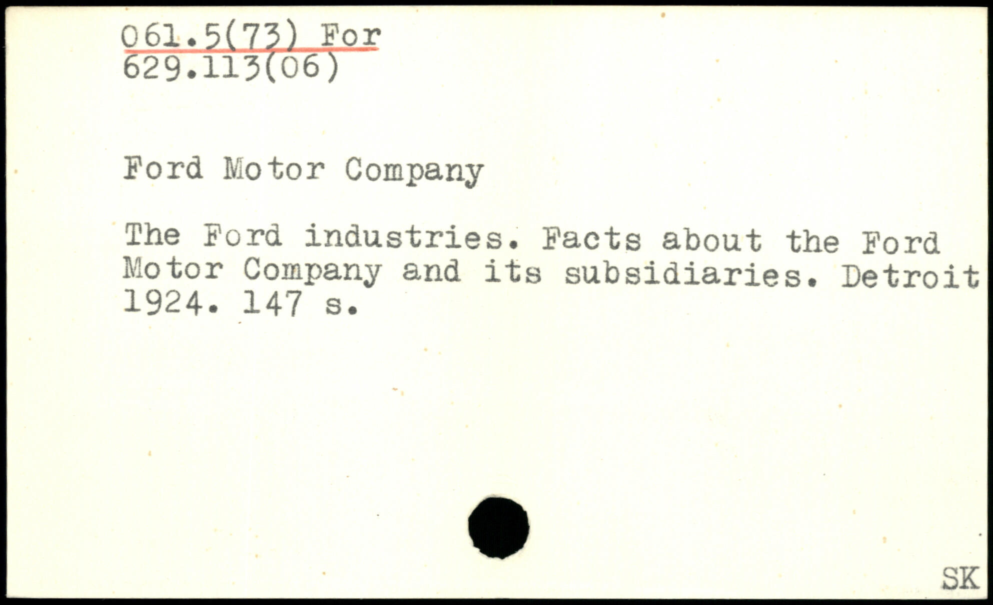 Ford Motor Company The Ford industries. Facts about the Ford Motor Company and its subsidiaries, Detroit 1924.